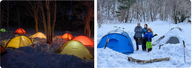 겨울 나리 야영장 & 돔쉼터에서는 코오롱스포츠의 텐트와 장비를 체험할 수 있는 캠핑존과 감성 캠핑을 경험할 수 있는 이글루존이 마련되어 있다고 합니다. 코오롱스포츠의 캠핑 장비는 현장에서 선착순으로 무료 대여가 가능하다고 하는데요, 별도의 장비를 가져갈 필요 없이 무료로 캠핑을 즐길 수 있는 좋은 기회입니다.