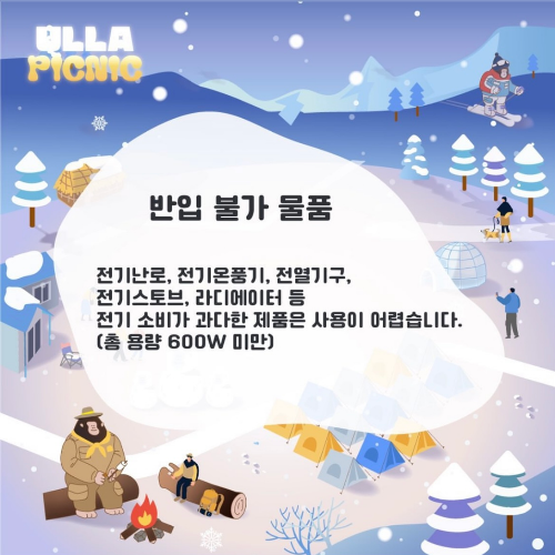 전기난로, 전기온풍기, 전열기구, 전기스토브, 라디에이터 등 전기소비가 과다한 제품은 반입 불가라고 하니 참고해 주세요.