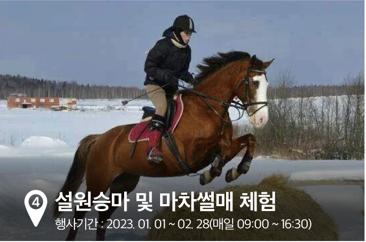 - 설원 마차썰매: 1인 15분 25,000원 (4인 이상 출발, 최대 6명)