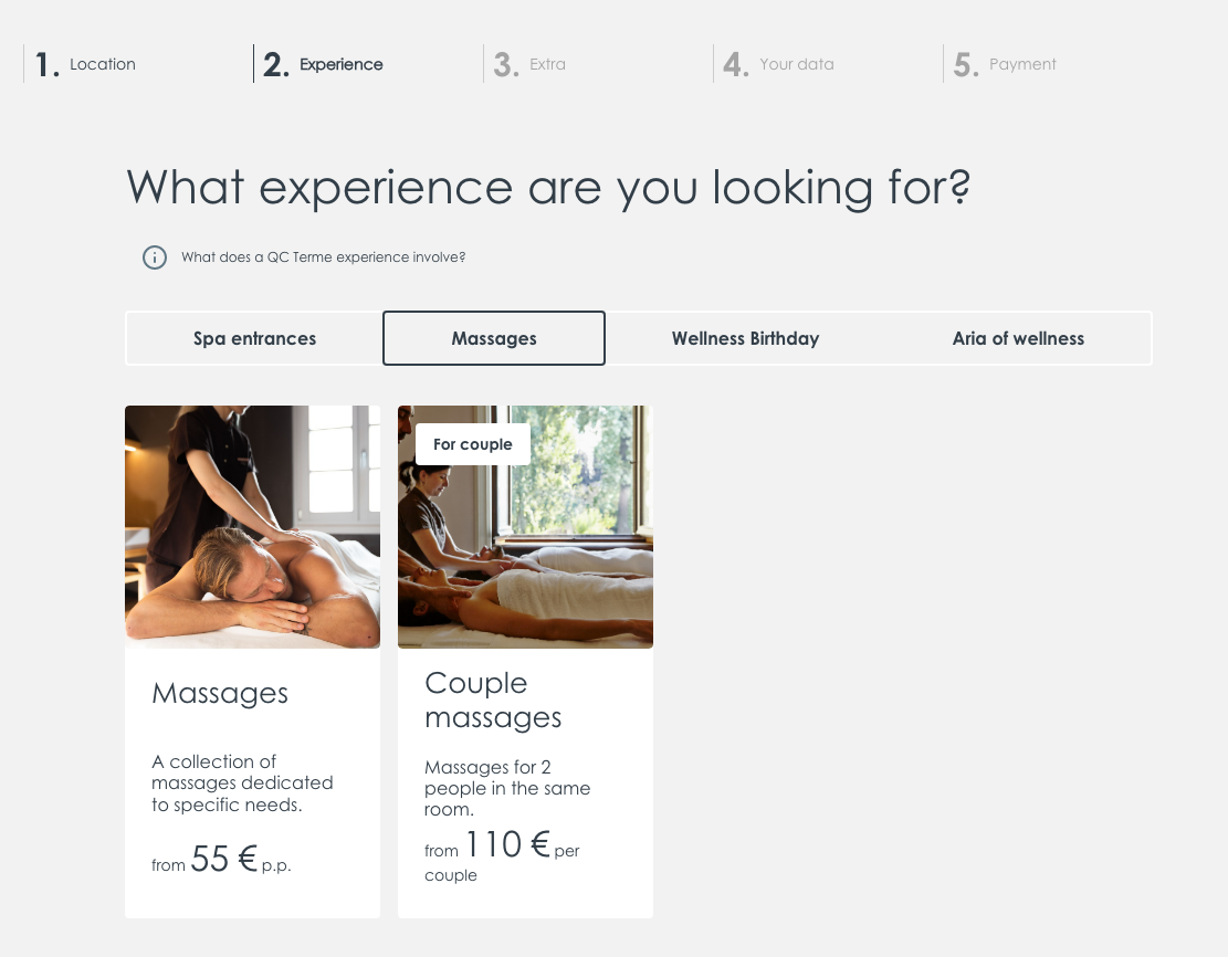 QC Terme에서 마사지를 받으실 수도 있습니다. 4월 17일-5월 7일 휴업 이후로는 마사지를 중단하는 것인지 5월 혹은 6월로 예약 날짜를 설정하면 나오지 않는데요, 휴업 이전인 4월 17일 이전으로 예약하신다면 마사지 예약도 가능합니다.
